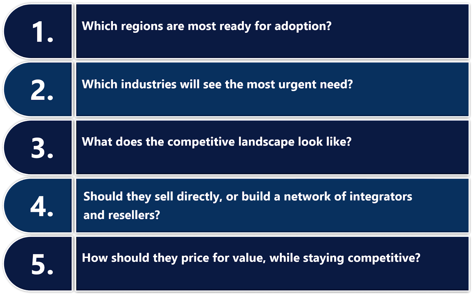 Determining the optimal mix of direct sales, distributors, partnerships, or digital channels enhances market penetration.